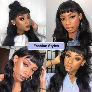 New Design 180% Density Body Wave Wig With Bangs Style Human Hair Wigs