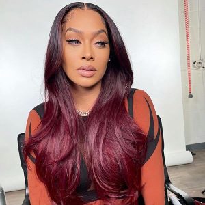New In 1B/99J Ombre Burgundy Wig 180% Density Body Wave Remy T Part Lace Wig Glueless Wig