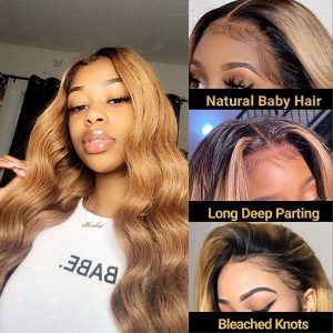 New In 1B/27 Ombre Color Honey Blonde Invisible Lace Wig Body Wave T Part Lace Wig Pre Plucked