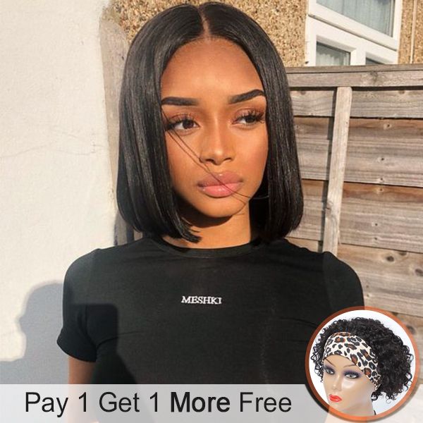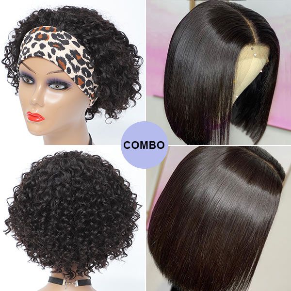 Combo Sale ! 2021 New Styles Curly Bob Headband Wigs And Straight Bob Lace Wig Human Hair