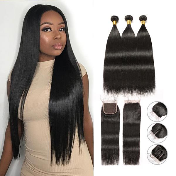 cykabelle 100 Human Hair Brazilian Straight Hair Virgin Hair 3 Bundles With Closure