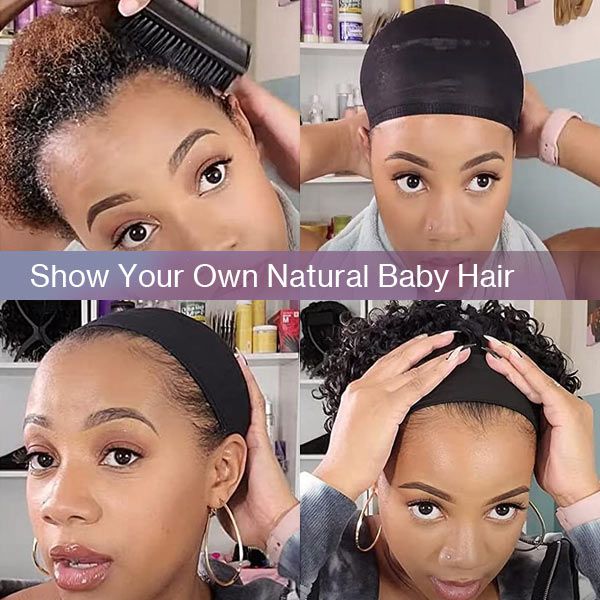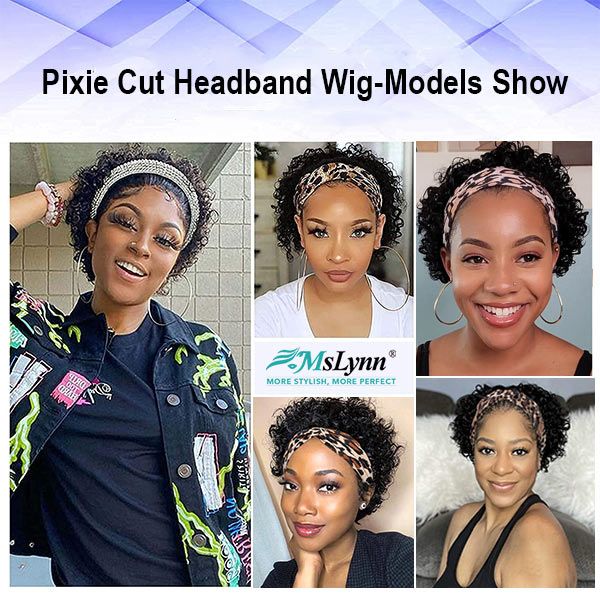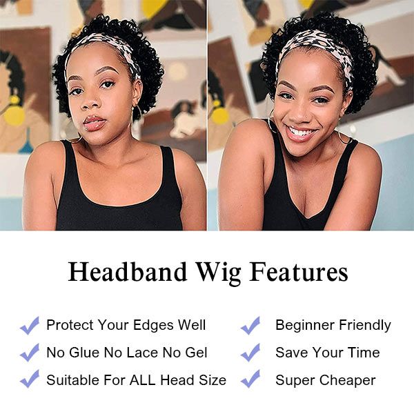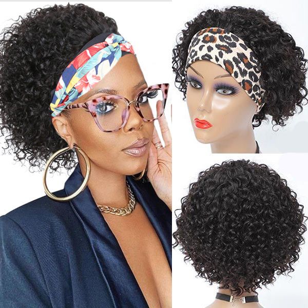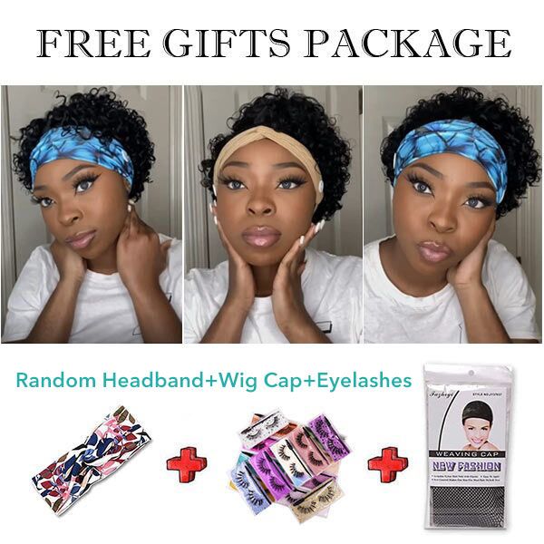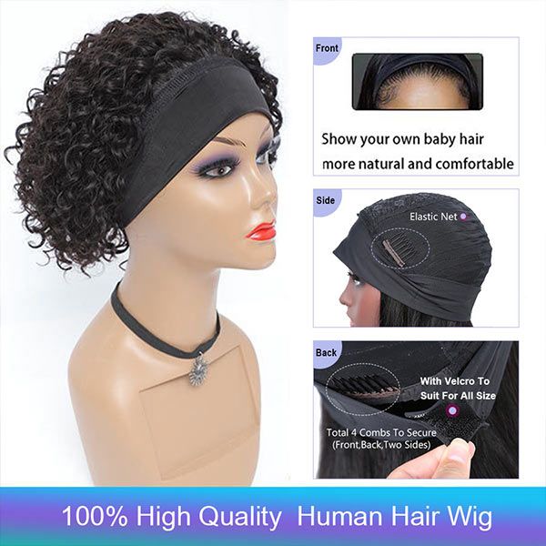 cykabelle Hair Short Curly Pixie Cut Headband Wig Short Bob Human Hair Wig For Women Easy Wear Half Wig